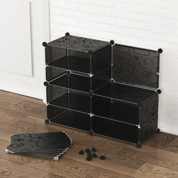 Datorită designului modular, este posibil să extindeți setul cu alte elemente din aceeași serie. Astfel, puteți crea cu ușurință o comodă mai mare, un sistem de rafturi sau puteți ajusta numărul de rafturi la nevoile dvs. și la numărul de pantofi pe care îi dețineți.