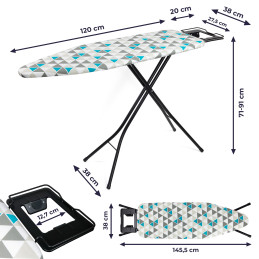 Tabla a fost proiectată pentru confort maxim la călcat. Suprafața mare de lucru de 120 x 38 cm oferă suficient spațiu pentru a întinde confortabil chiar și articole de îmbrăcăminte mai mari, cum ar fi cămăși, rochii sau pantaloni. Capacul fabricat din bumbac de înaltă calitate este rezistent la căldură și abur pentru durabilitate îndelungată și curățare ușoară. Suprafața moale permite fierului de călcat să alunece ușor peste țesătură fără riscul de a se arde.