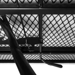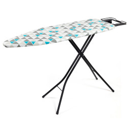 La capătul mesei, există un suport metalic pentru fierul de călcat cu orificii de ventilație care permit căldurii să iasă liber. Acest lucru vă permite să așezați în siguranță fierul fierbinte în timp ce călcați fără riscul de a arde husa sau țesătura.