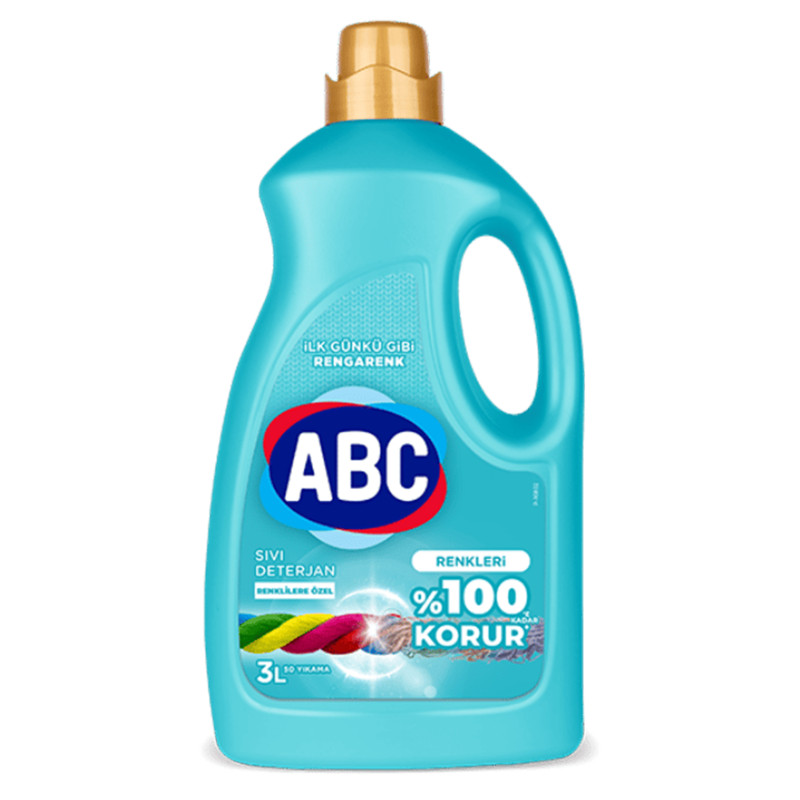 Lichidul de spălat ABC cu o capacitate de 3 L a fost dezvoltat pentru spălarea eficientă și sigură a țesăturilor colorate și închise la culoare. Formula special dezvoltată îndepărtează eficient murdăria și petele, protejând în același timp intensitatea culorii și profunzimea culorilor închise.