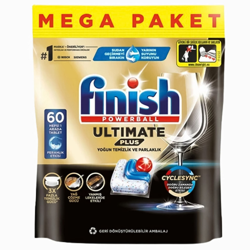 Capsulele pentru mașină de spălat vase Finish Powerball Ultimate Plus sunt un detergent avansat conceput pentru a oferi performanțe superioare de spălare a vaselor într-un singur ciclu. Formula inovatoare combină acțiunea multifuncțională de curățare, degresare și strălucire pentru a garanta o curățenie perfectă chiar și în cazul murdăriei abundente.