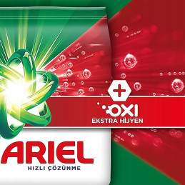 Ariel Oxi este un detergent de rufe avansat, îmbogățit cu tehnologia Oxi, care îndepărtează eficient petele dificile și menține hainele proaspete și parfumate. Ariel Oxi este recomandat în special pentru țesăturile albe și deschise la culoare, deoarece ajută la menținerea strălucirii și intensității culorii acestora. Datorită formulei active cu adaos de oxigen, produsul acționează adânc în fibre, îndepărtând petele dificile și prevenind redepunerea lor.