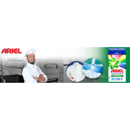 Ariel Professional Color este o pudră eficientă, profesională, pentru spălarea țesăturilor colorate, dezvoltată pentru utilizatorii exigenți din industria HoReCa și spălătoriile industriale. Datorită formulei sale avansate, îndepărtează în mod eficient murdăria, menținând în același timp intensitatea culorii și prospețimea - de la 20°C, până la 95°C.