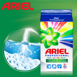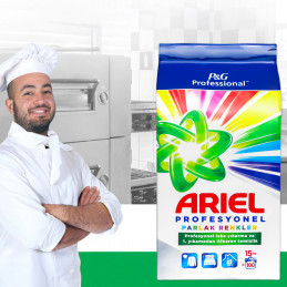 Ariel ProfessionalColor este o pudră eficientă și profesională pentru spălarea țesăturilor colorate, creată pentru utilizatorii exigenți din sectorul HoReCa și spălătoriile industriale. Datorită formulei sale avansate, îndepărtează eficient murdăria, menținând în același timp intensitatea culorii și prospețimea - de la 20°C până la 95°C.