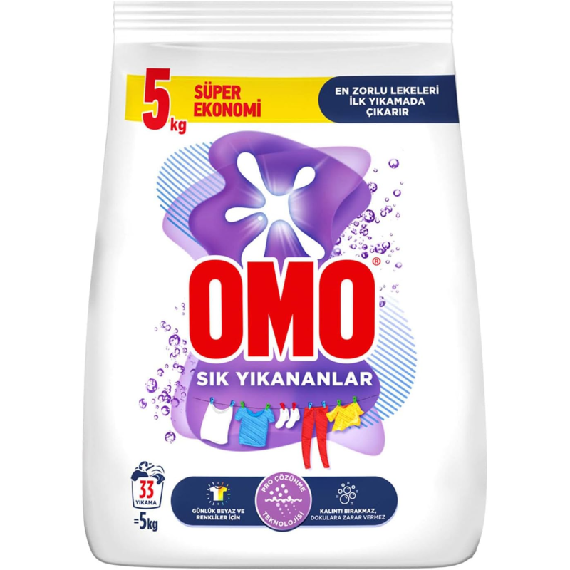 OMO Frequently Washed este o pudră de spălat universală pentru spălarea frecventă a țesăturilor albe și colorate. Formula sa eficientă, dar delicată, a fost dezvoltată pentru utilizarea zilnică, asigurând îndepărtarea completă a murdăriei, protejând în același timp culorile și structura țesăturilor.